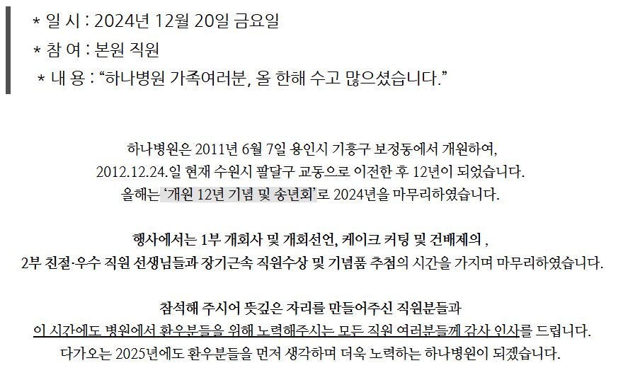 2024년 하나병원 송년 행사가 진행되었습니다. (2024.12.20)